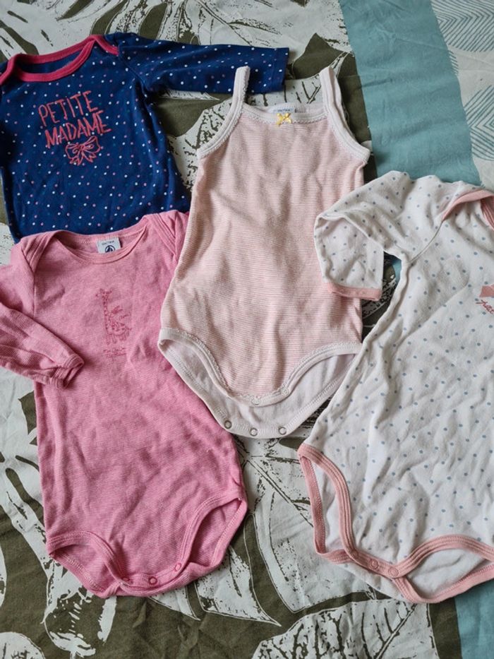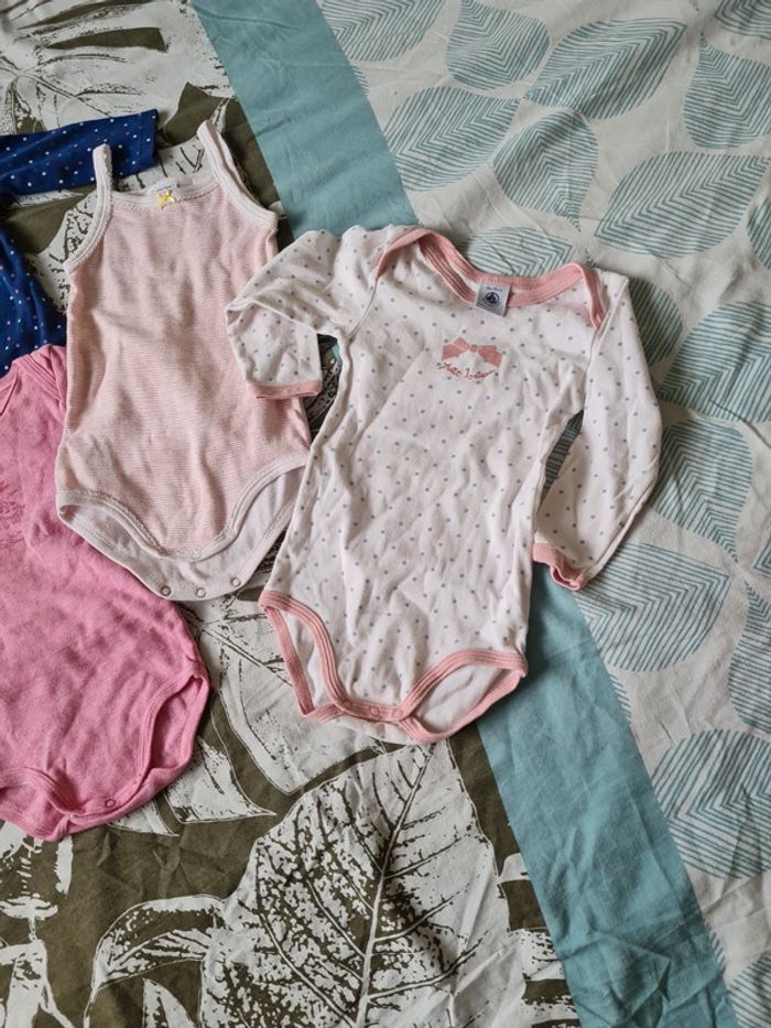 1 debardeur bodie 12 mois petit bateau 1 manche longue rayé petit bateau 12 mois 1 bleu à pois dpam 12 mois 1 petit bateau blanc à pois manches longue 18 mois