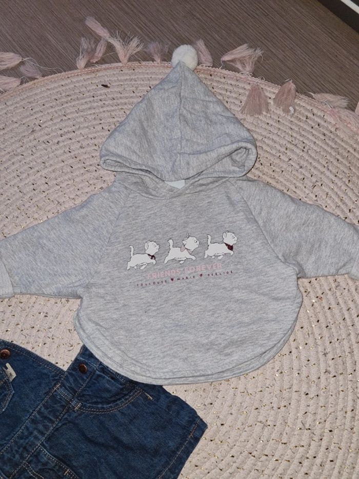 Pull poncho 3 mois marié disney gris pailleté or Salopette jeans 3 mois
