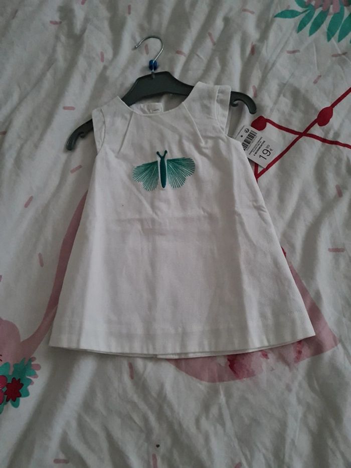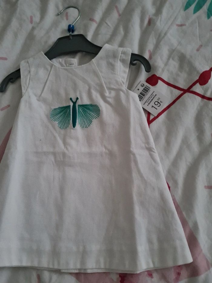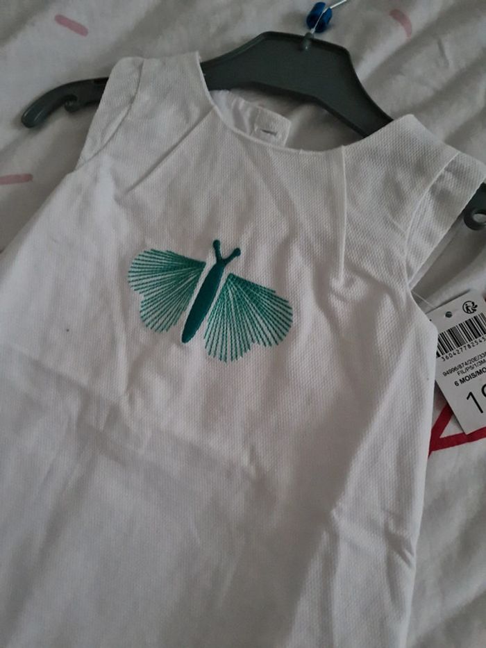 Neuve avec etiquette robe blanche motif papillon couleur menthe 6 mois obaibi