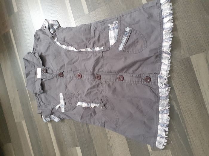 Jolie robe grise avec bordures à carreaux bleus et roses Taille : 4 ans Marque : Pikouic Très bon état