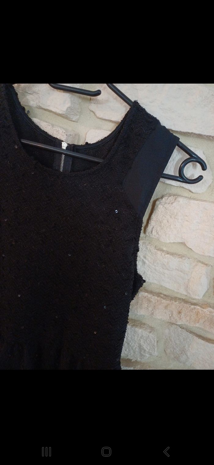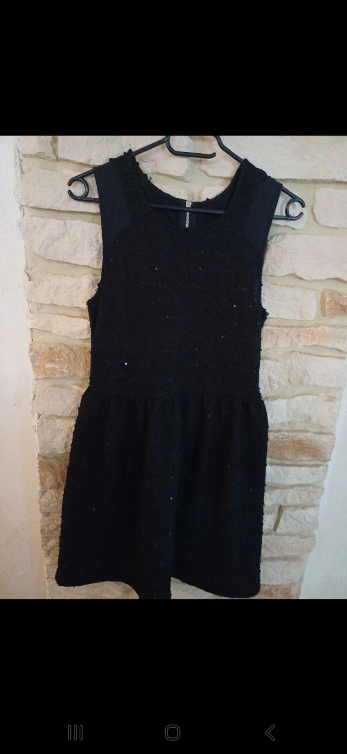 Jolie robe noire, sans manches. Fermeture éclair à l arrière. Quelques sequins brillants