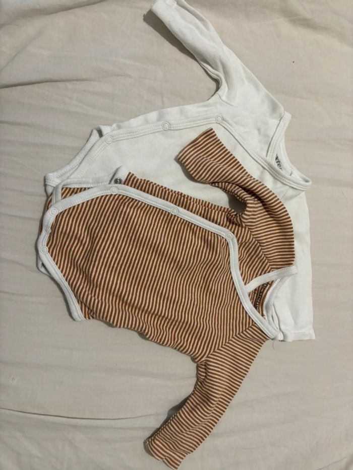 Lot de 2 bodies blanc et rayé blanc et marron clair Très bon état Taille 3M