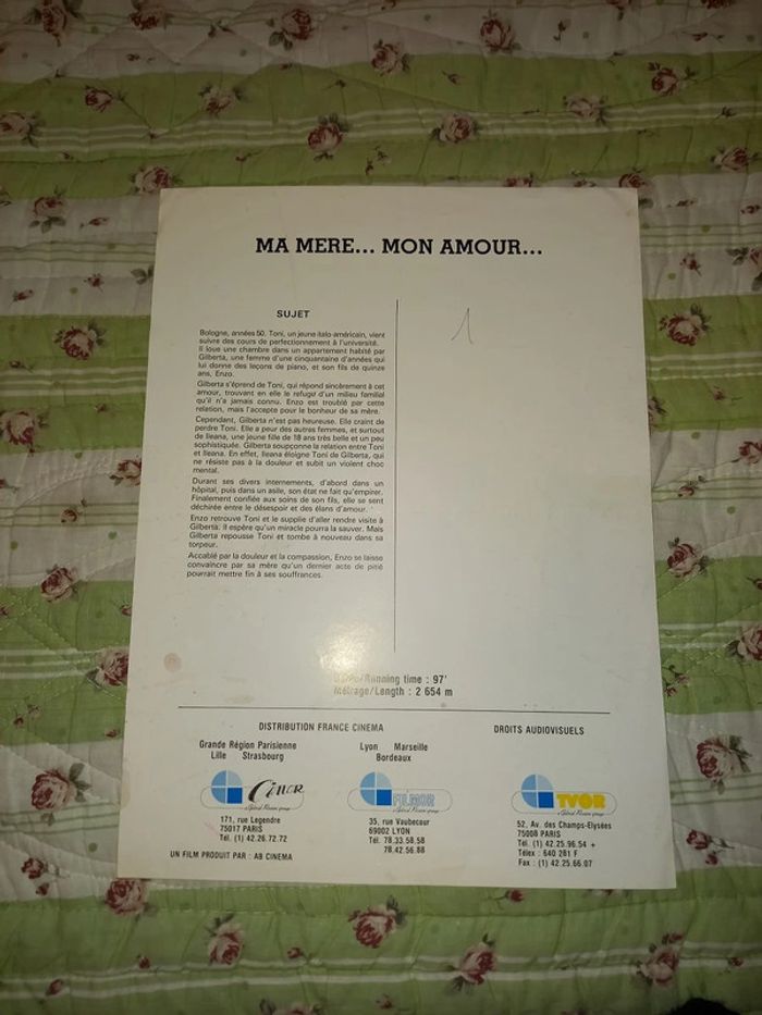 Affichette Cinéma Ma Mere Mon Amour - photo numéro 1