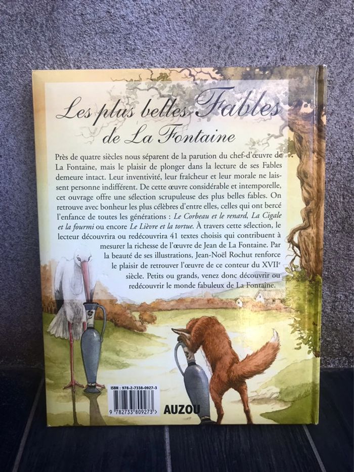 Livre illustré : Les plus belles fables de la Fontaine Comprend 41 textes avec des illustrations par Jean-Noël Rochut Aux éditions Auzou Il est en bon état, prix neuf : 15,10€
