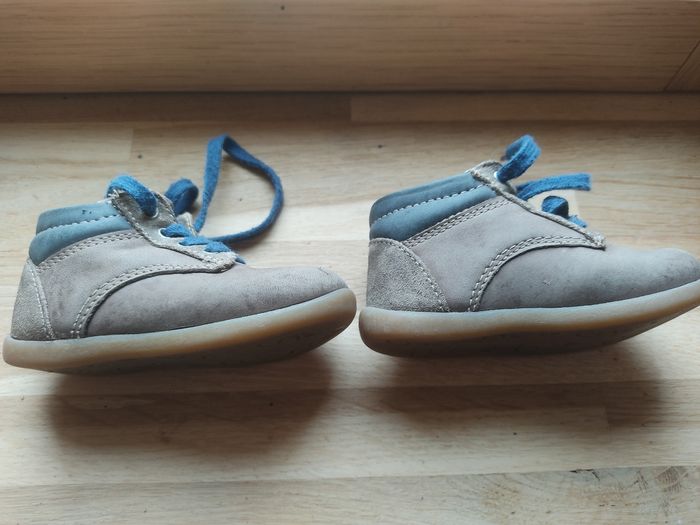 Chaussure avec dessus doublure et semelle intérieure cuir. Extérieur type daim/cuir mais imperméable. Plusieurs tâches et rayures ( voir photo