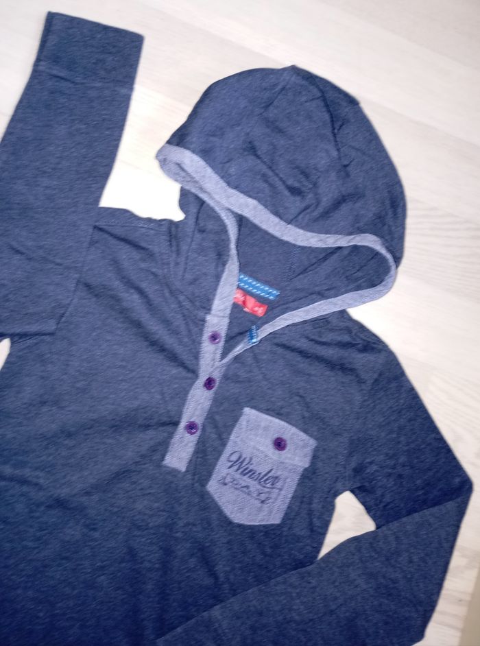 Tee-shirt à capuche bleu marine chiné Marque : Tissaia T. 8 ans Très bon état général