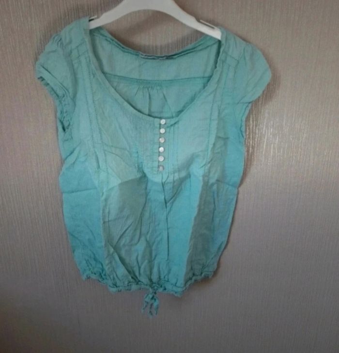 Blouse bleue turquoise Étiquette de taille absente mais correspond à un 38/40 Lien a la taille
