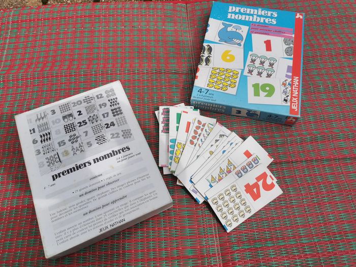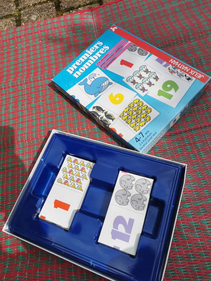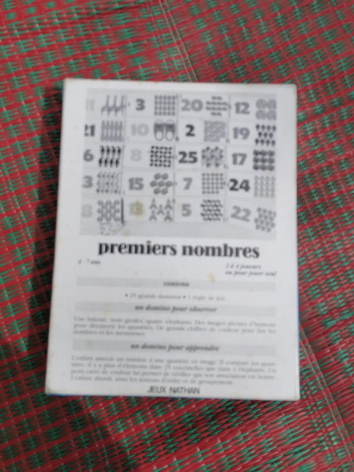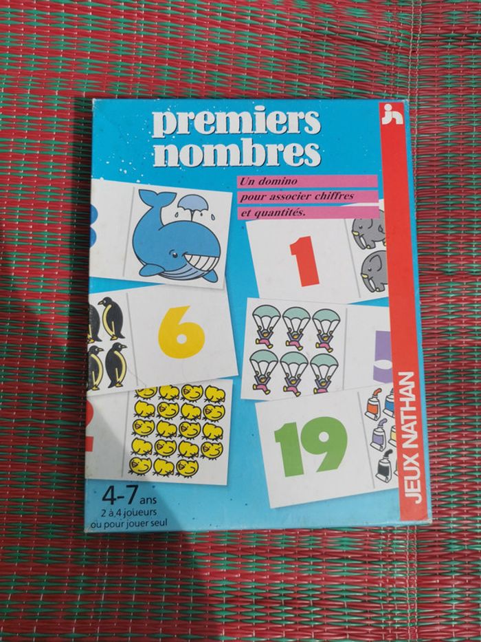 Premiers nombres, jeux Nathan, 4-7 ans, il manque la notice, le jeu est un peu défraichi, mais reste en bon état, poids 322g. Pensez à faire des lots afin de bénéficier des remises que j'ai régulièrement sur ma page. #premiersnombres #jeuxnathan #jeux4ans #jeux7ans