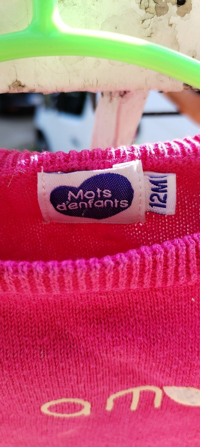Pull fuschia pour fille. Marque Mots d'enfants. Taille 12 mois. Comme neuf. Que mondial relais ou Relais Colis.