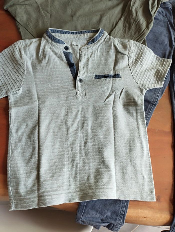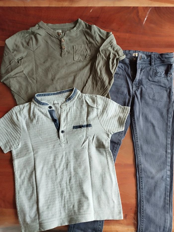 Ensemble garçon 6 ans 1 jeans bleu Vertbaudet 1 polo blanc 1 t-shirt manches longues vert Bon état D'autres lots de vêtements disponibles, n'hésitez à regarder ma boutique