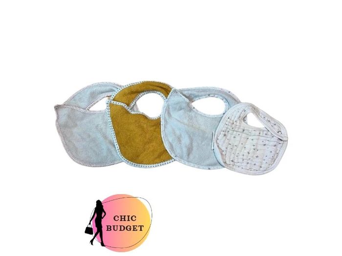 lot pratique de bavoirs pour accompagner les repas de votre bébé jusqu'à ses 9 mois. Ces bavoirs ont été utilisés avec soin et sont prêts à être réutilisés.