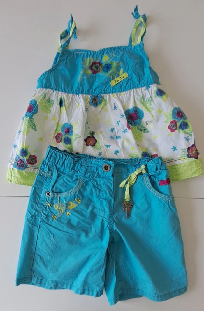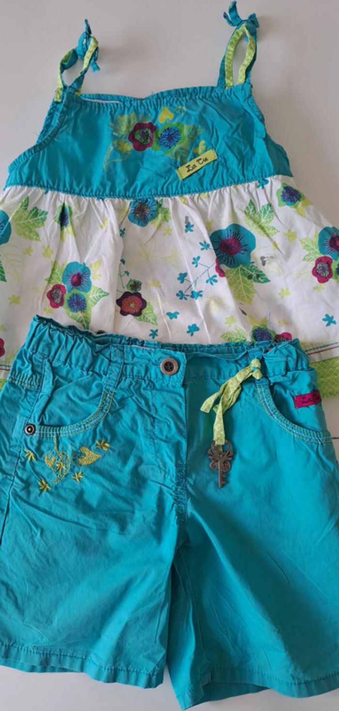 Joli ensemble été pour fille. Marque : La Compagnie des Petits. Haut : 3 ans Short : 4 ans #fampacrlt_vêtements_fille_3ans