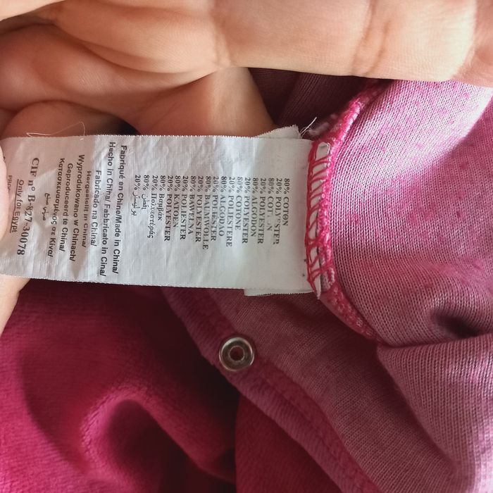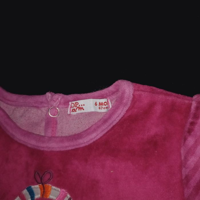 Grenouillère pour bébé 6 mois, en très bon état couleur bordeaux et rose, marque : Dpam ,80% coton et 20% polyester.