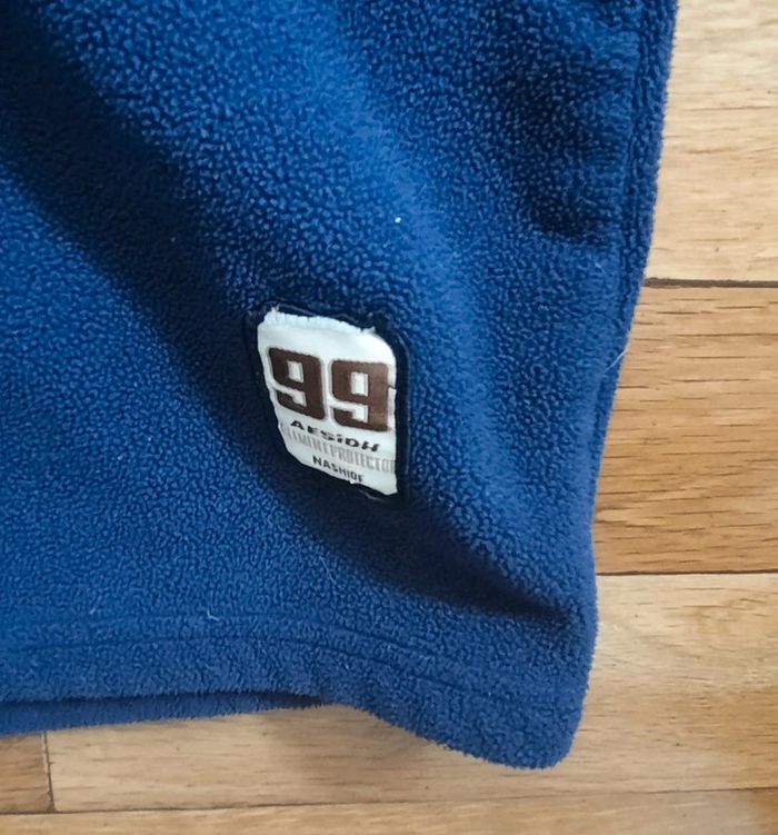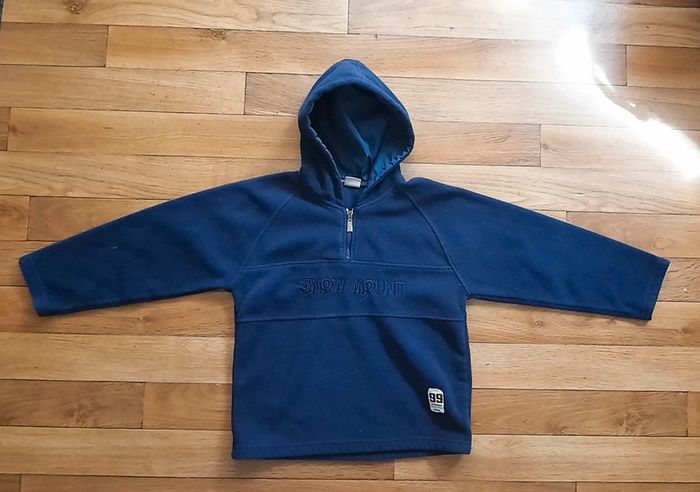 Pull polaire A capuche 10 ans Bleu marine Attention..le logo en bas du pull est décousu sur le haut