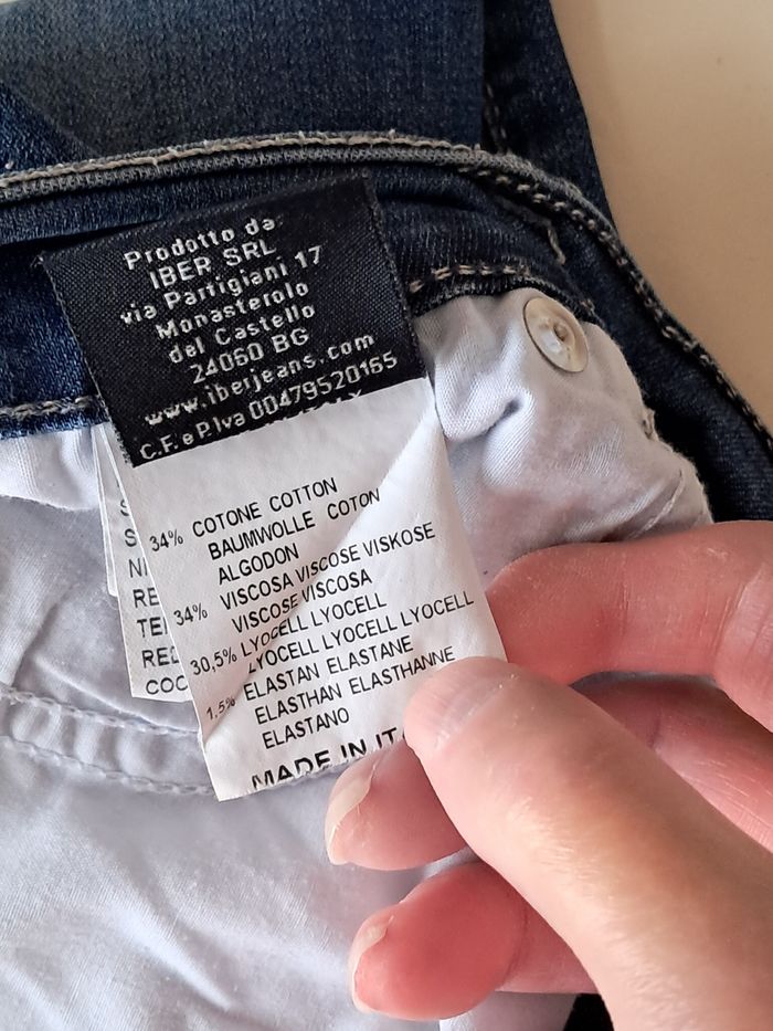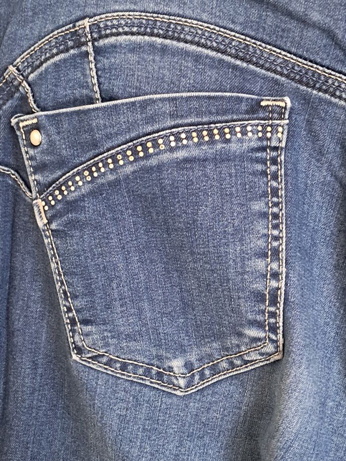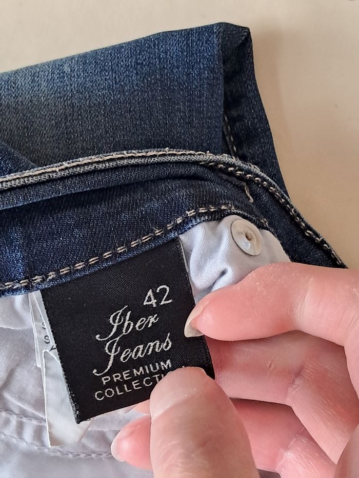 Jean taille 42 Aux poches derrière des brillants Écusson "yber" derrière Voir photo pour les matières et longueur