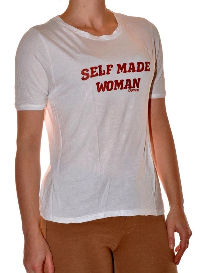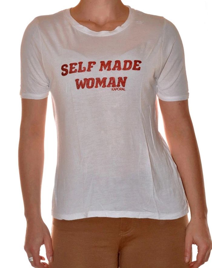 tshirt taille M blanc uni motif texte self made woman kaporal en rouge  coupe classique