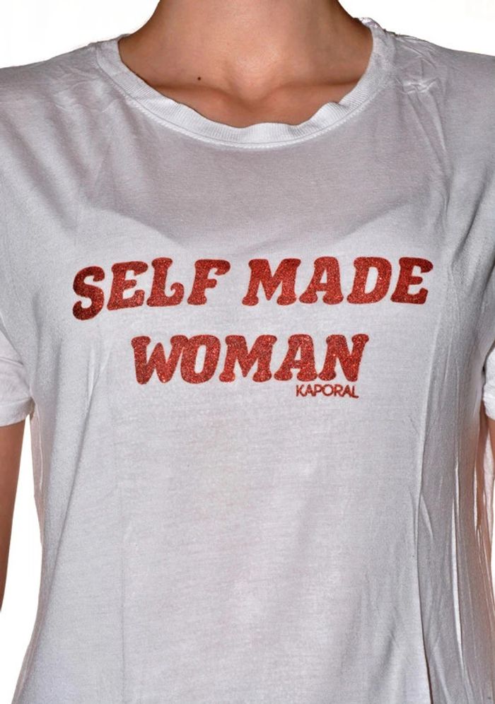 tshirt taille M blanc uni motif texte self made woman kaporal en rouge  coupe classique - photo numéro 1