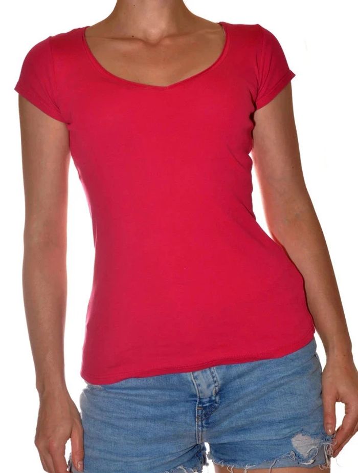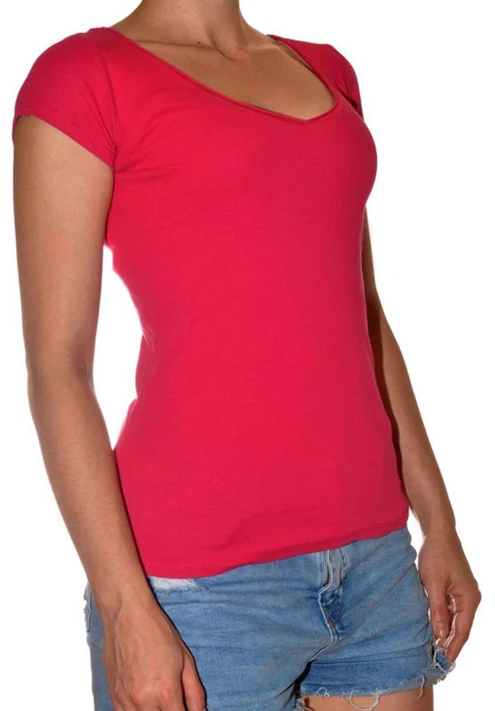 T-shirt rose uni ajusté taille 34/36 coupe basique col rond - photo numéro 5