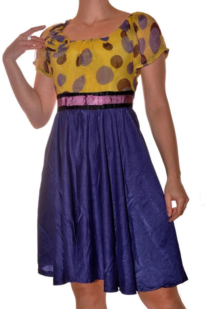 robe princesse originale violette et jaune à motif pois manches courtes taille S - photo numéro 1