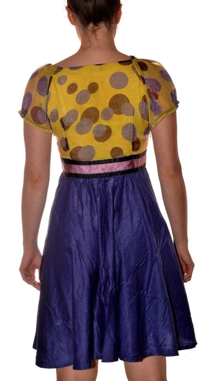 robe princesse originale violette et jaune à motif pois manches courtes taille S - photo numéro 4