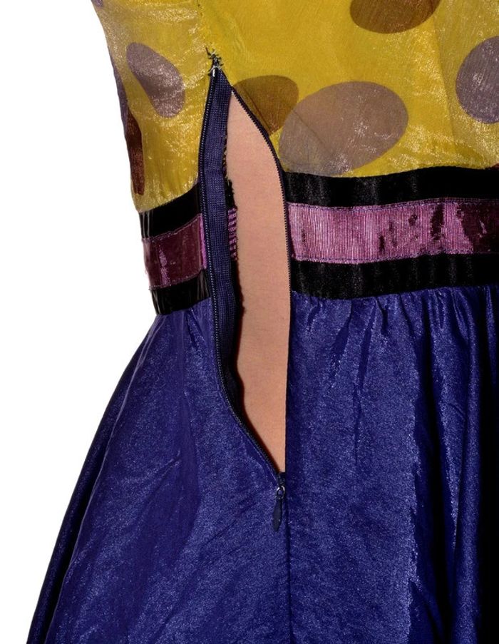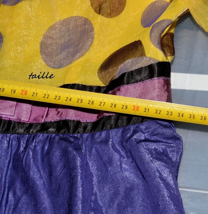 robe princesse originale violette et jaune à motif pois manches courtes taille S - photo numéro 7
