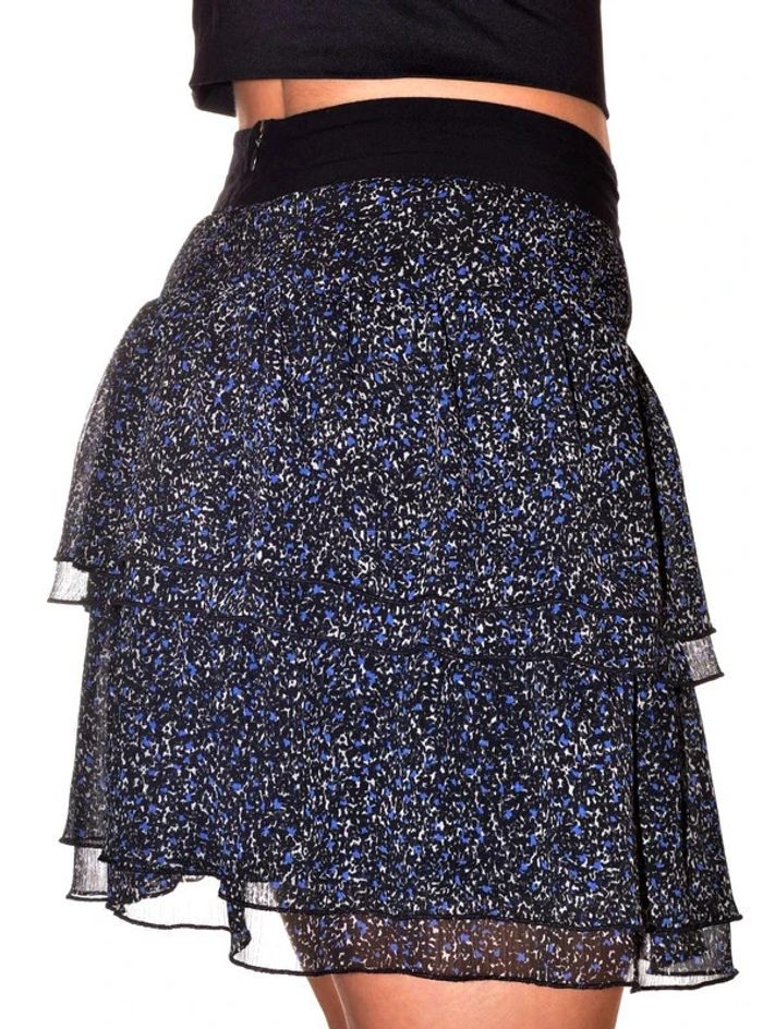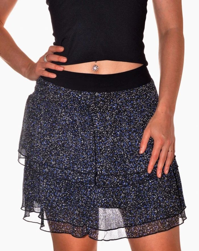 mini jupe doublée bleu noir motif léopard taille 34/36 élastiquée