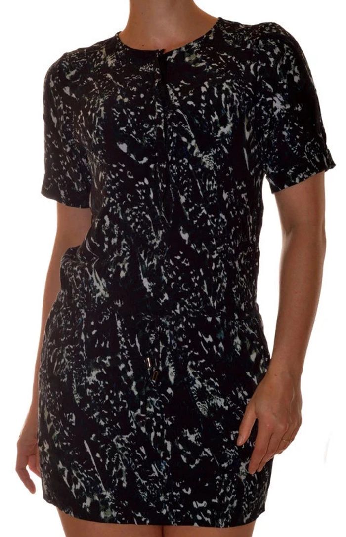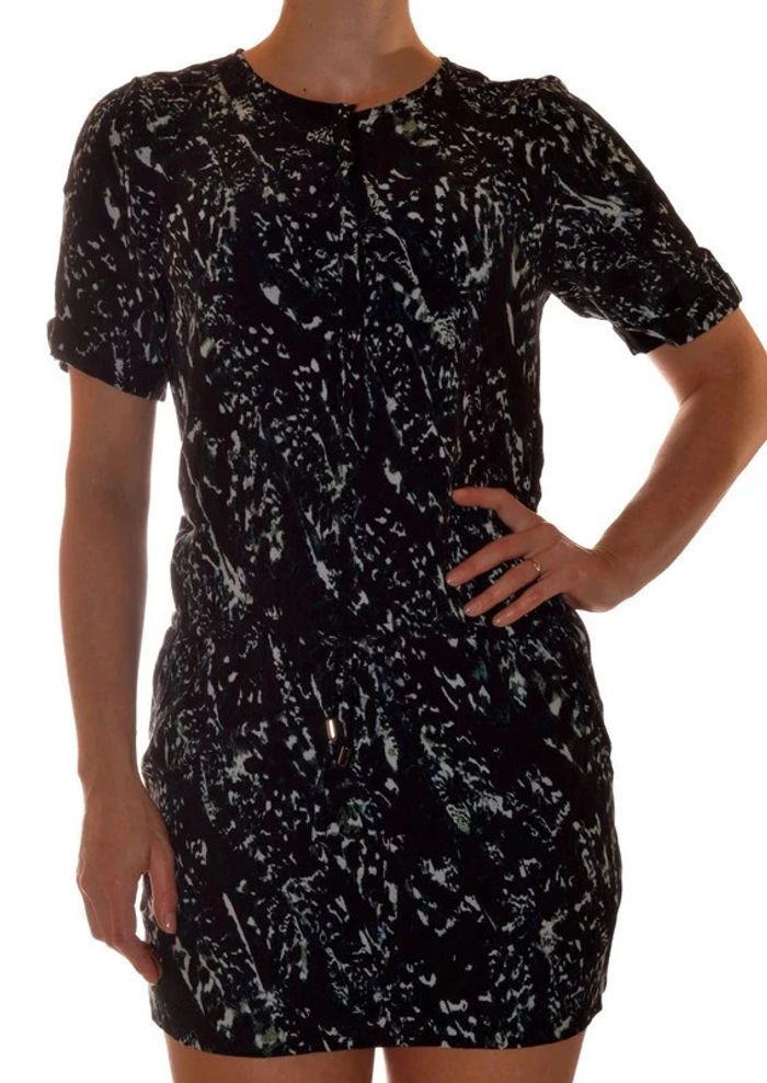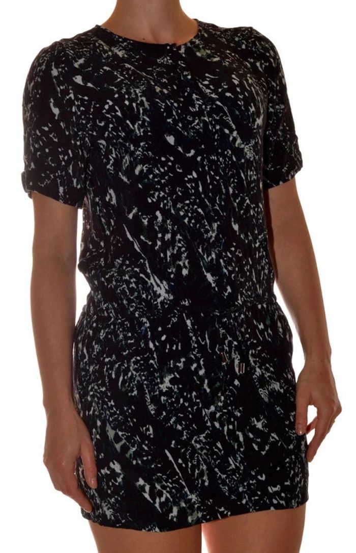 Robe manches courtes casual col rond noir à motif taille 36