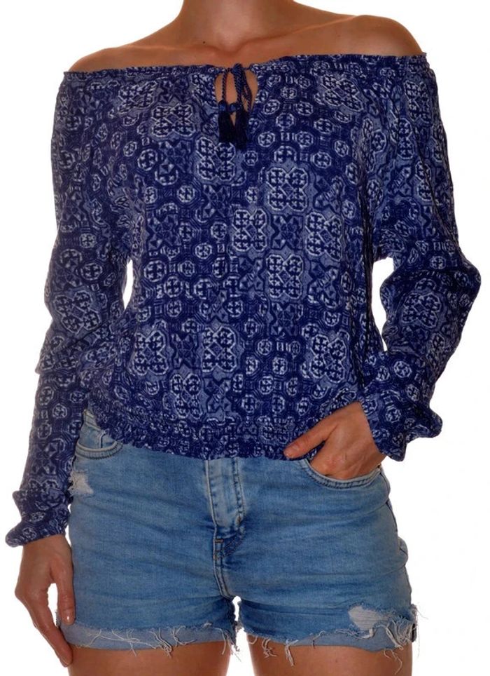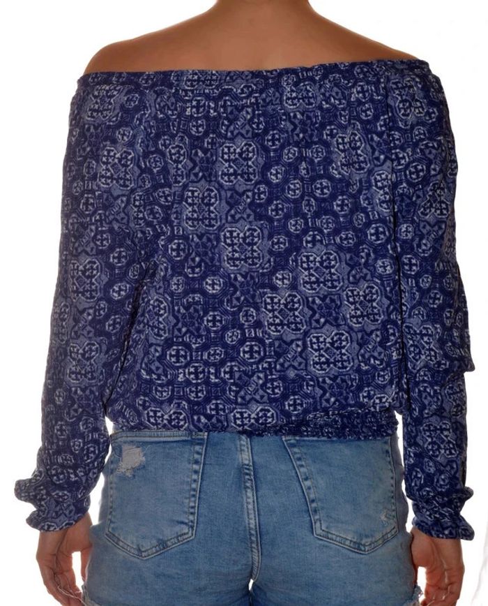 Blouse bleue à motif élastiquée manches longues taille S