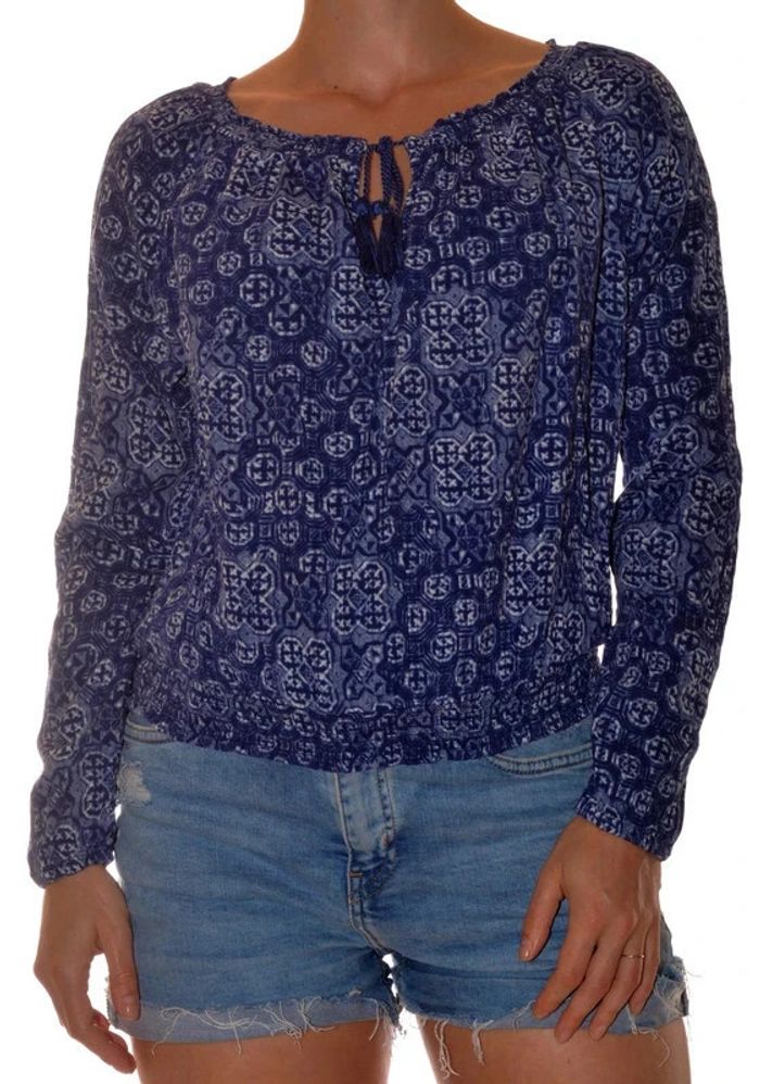Blouse bleue à motif élastiquée manches longues taille S - photo numéro 1