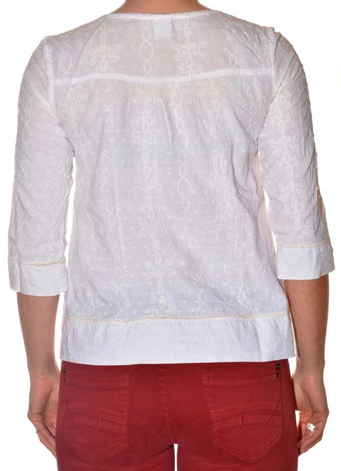 Blouse blanche crème unie brodée à manches 3/4 col rond taille S - photo numéro 3