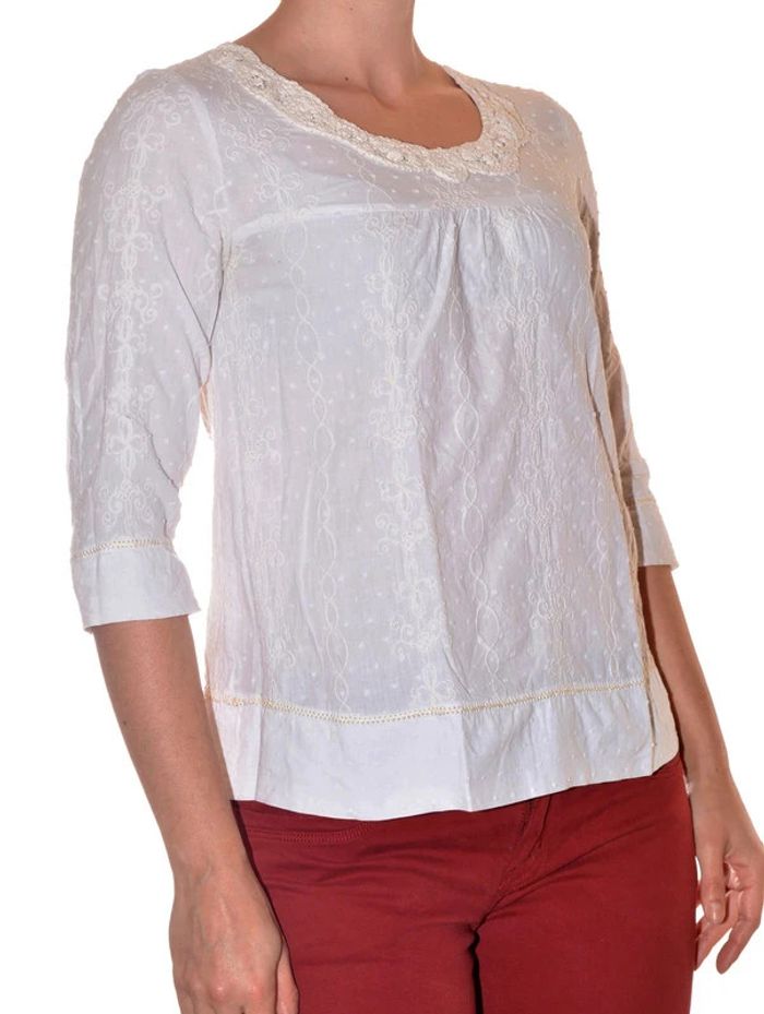 Blouse blanche crème unie brodée à manches 3/4 col rond taille S