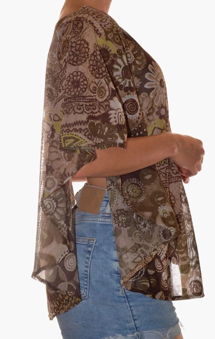 Top sans manches léger vert marron fluide à motif taille M - photo numéro 6