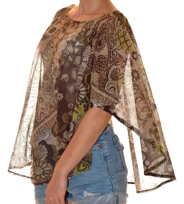 Top sans manches léger vert marron fluide à motif taille M - photo numéro 4