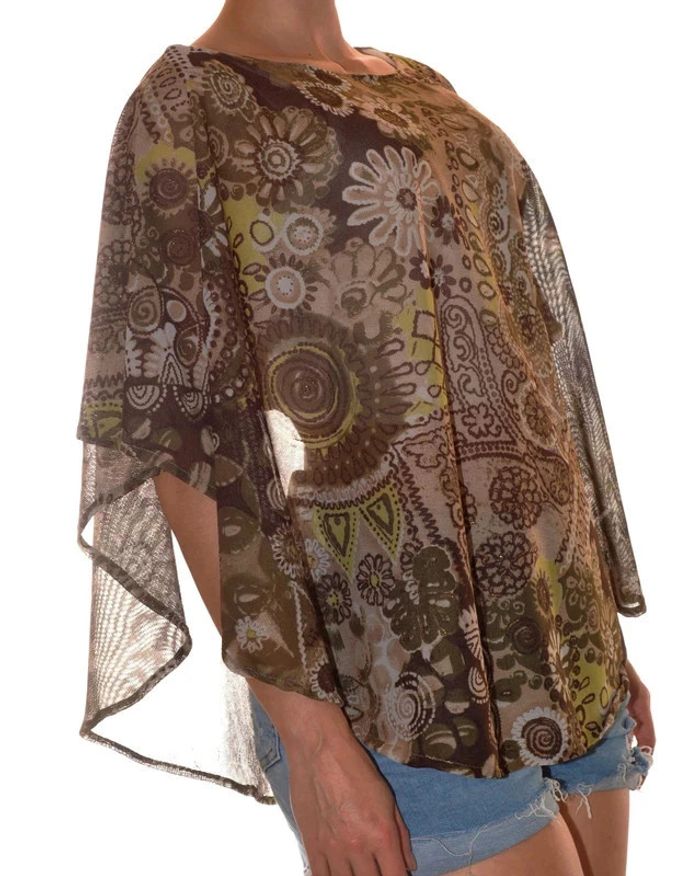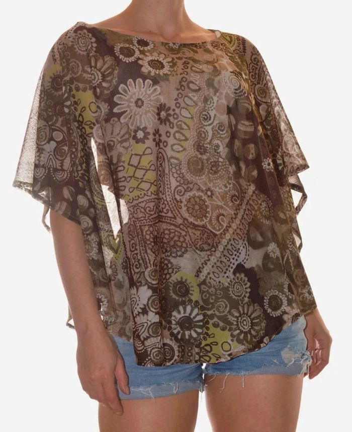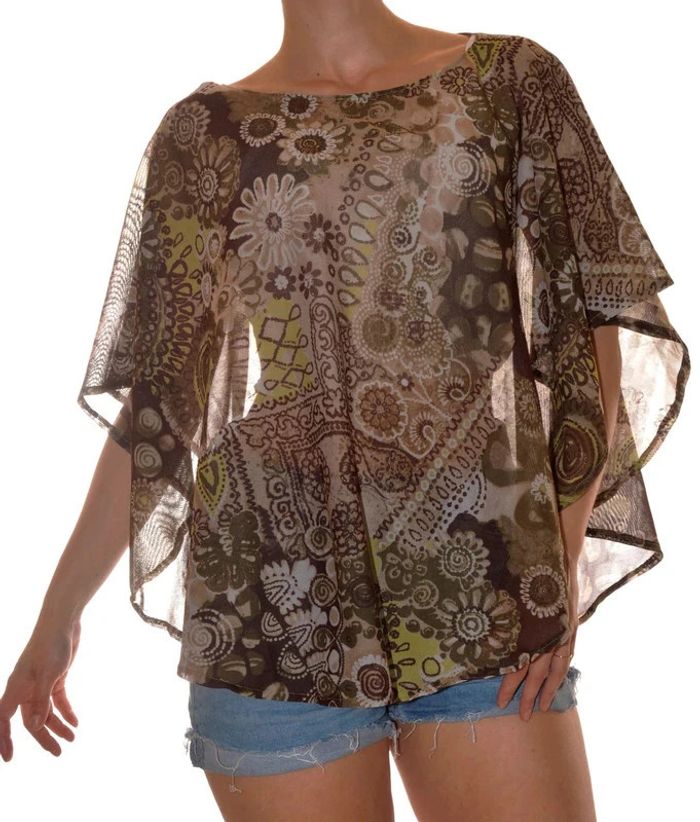 Top sans manches léger vert marron fluide à motif taille M - photo numéro 1