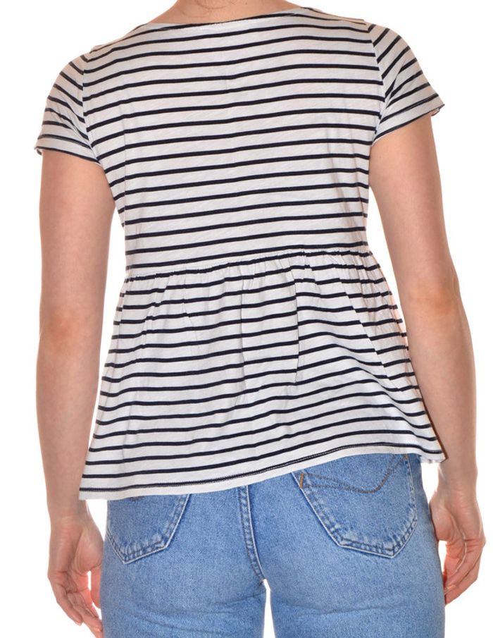 tshirt peplum blanc motif rayures blanc noir taille S col rond en coton - photo numéro 3