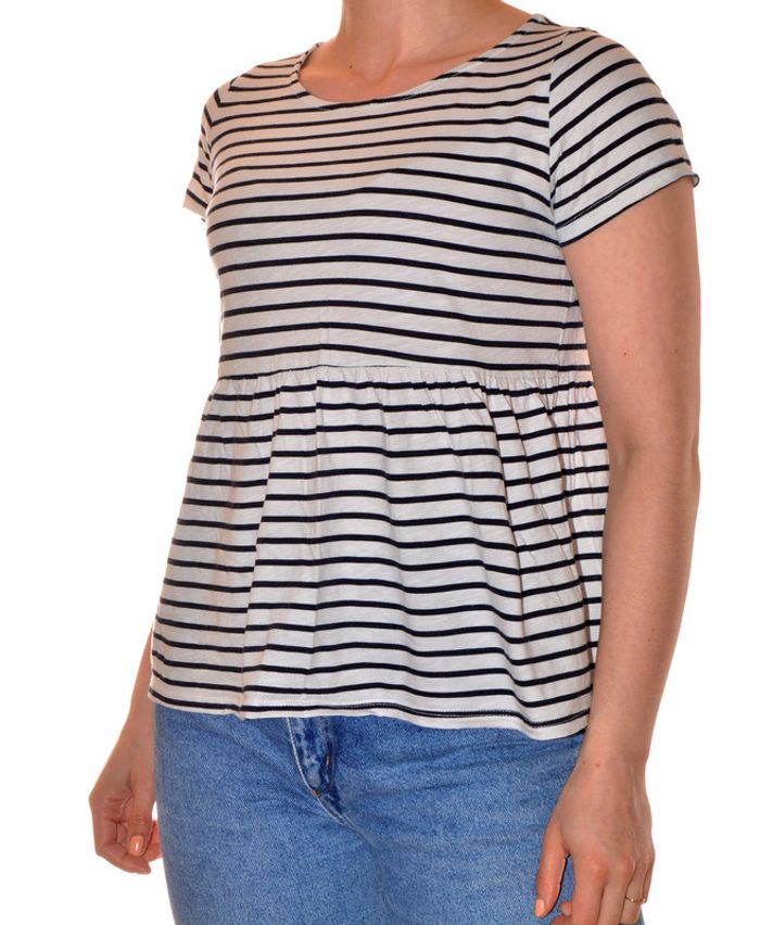 tshirt peplum blanc motif rayures blanc noir taille S col rond en coton - photo numéro 1