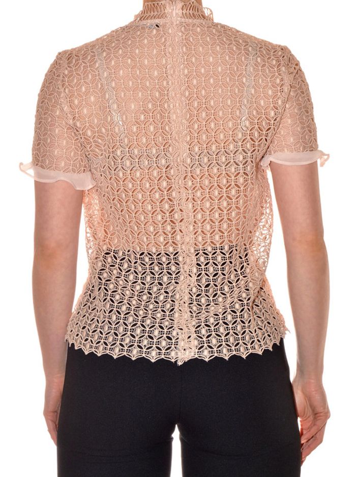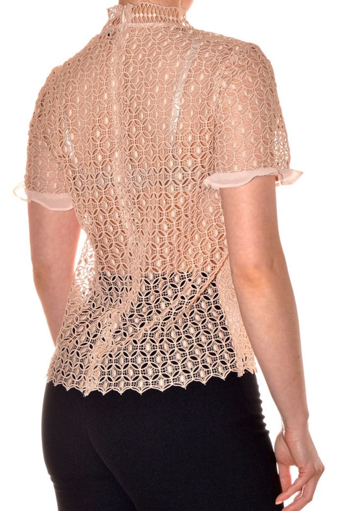 tshirt ajouré et doublé élégant col montant rose clair uni taille S - photo numéro 4