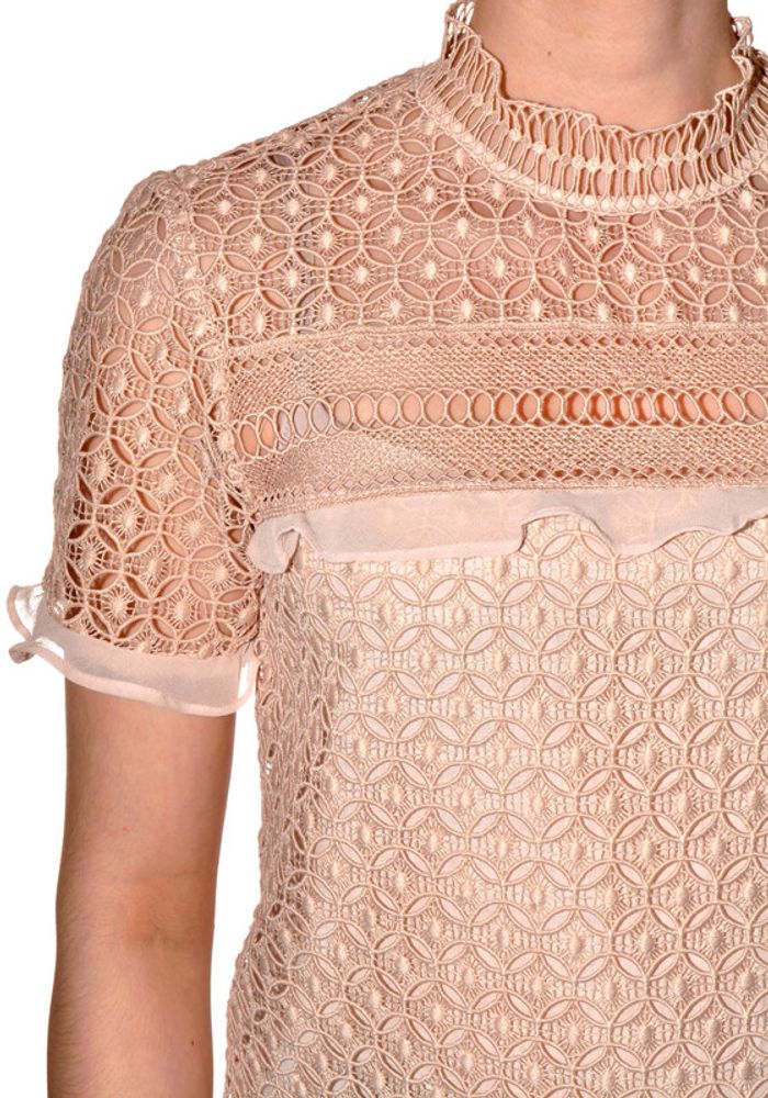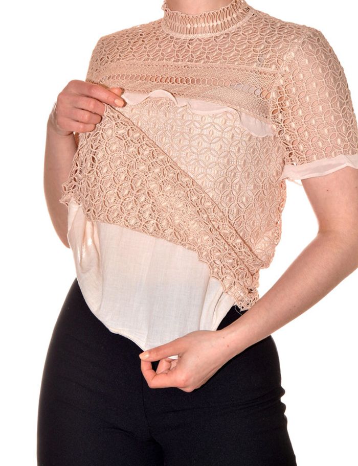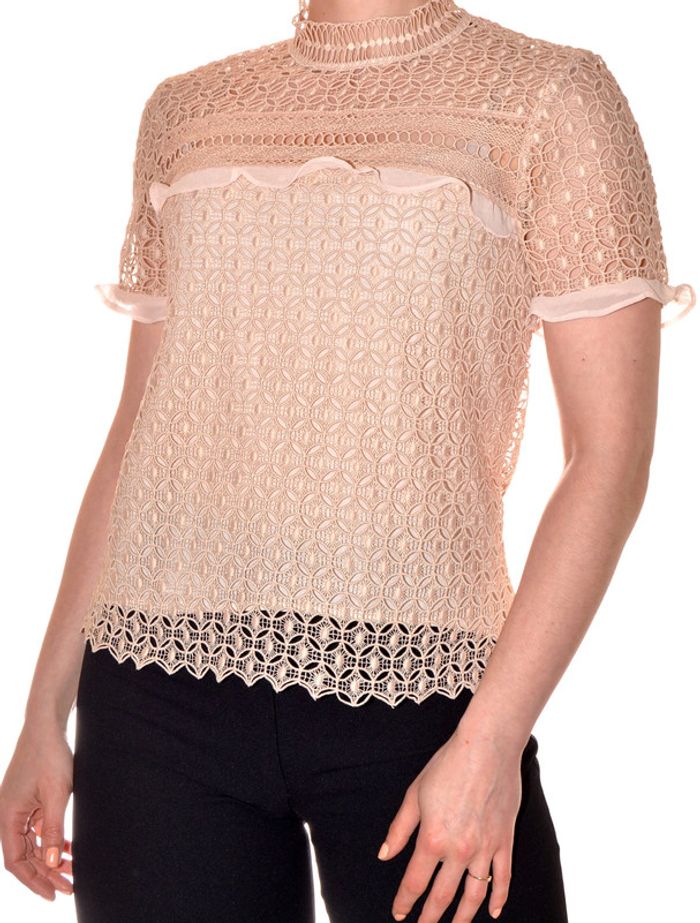tshirt ajouré et doublé élégant col montant rose clair uni taille S