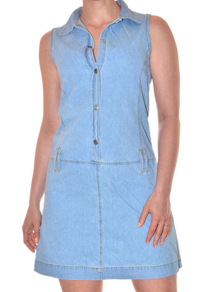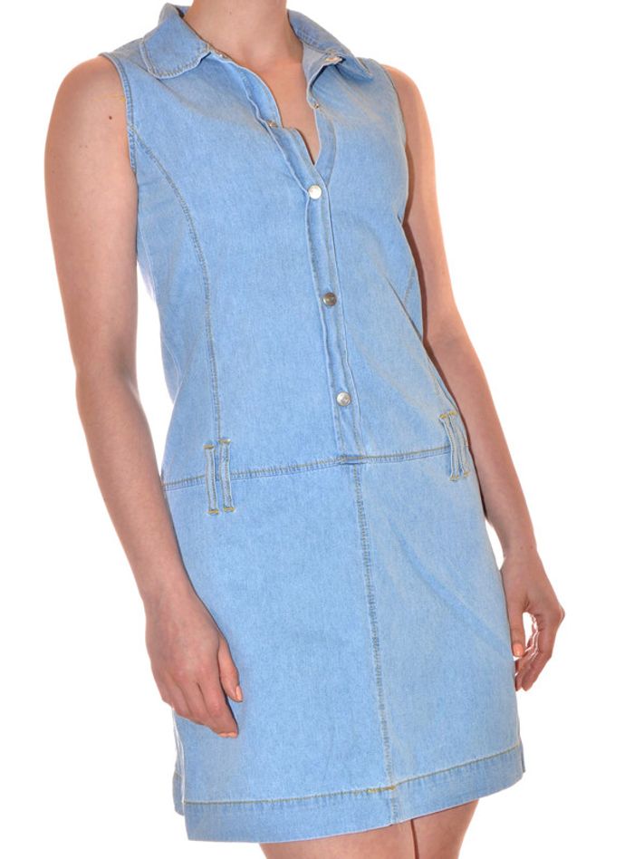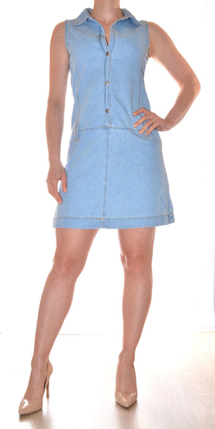 robe midi bleu clair uni sans manches col V jeans en coton taille 16 ans / 36 - photo numéro 4