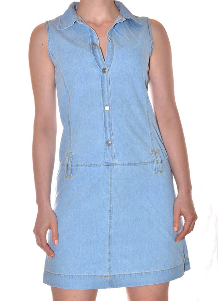 robe midi bleu clair uni sans manches col V jeans en coton taille 16 ans / 36 - photo numéro 1