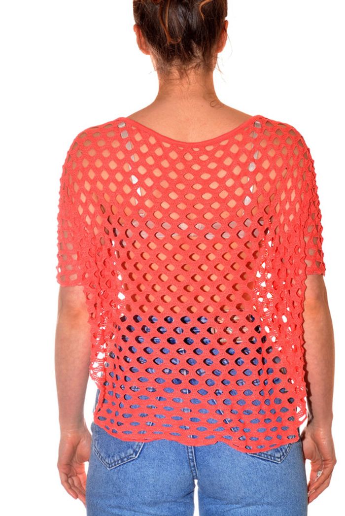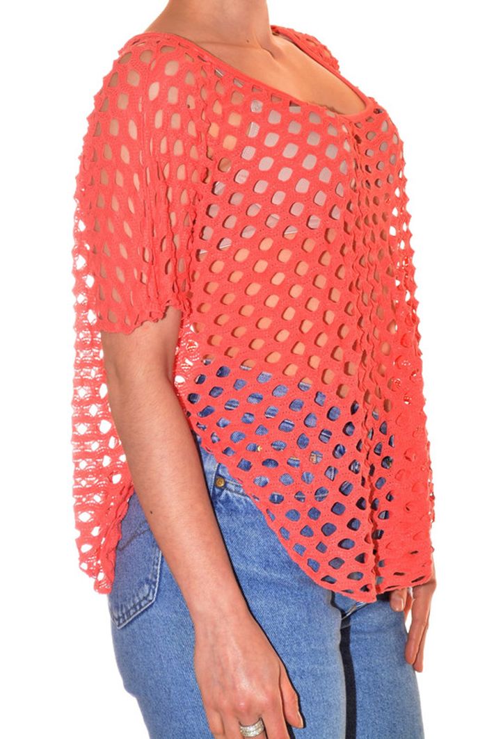haut rose corail uni transparent fausses manches courtes col rond taille M/L - photo numéro 4