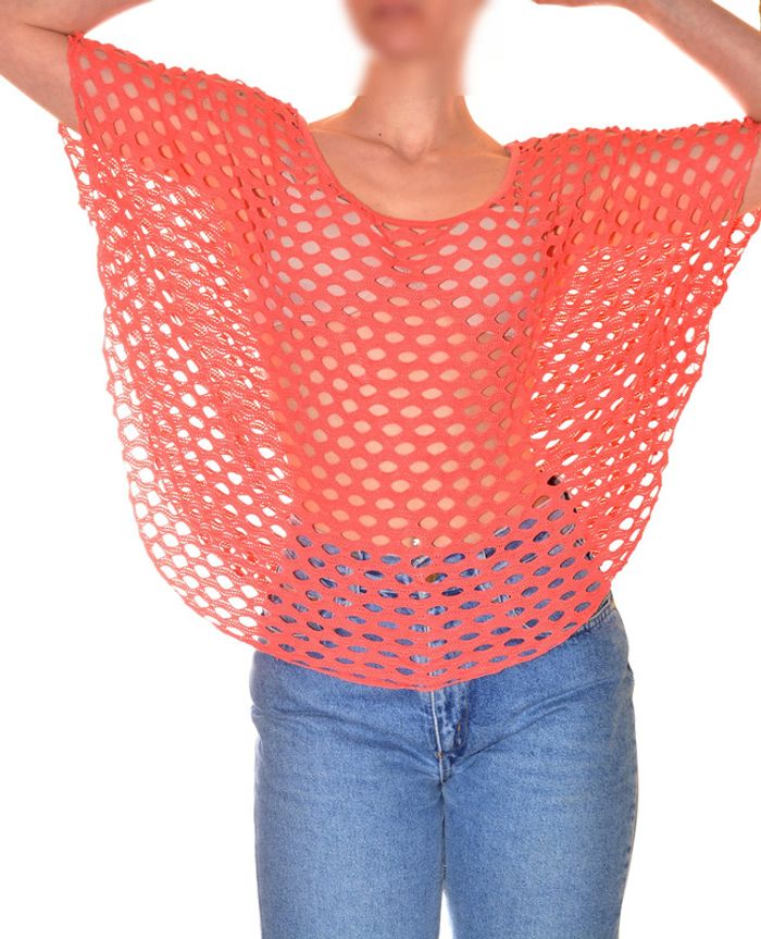 haut rose corail uni transparent fausses manches courtes col rond taille M/L - photo numéro 1