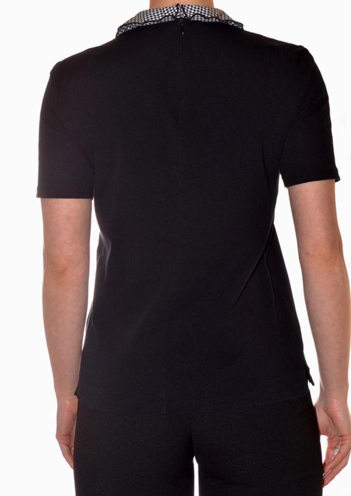tshirt noir uni col claudine motif carreaux noir et blanc taille M - photo numéro 3