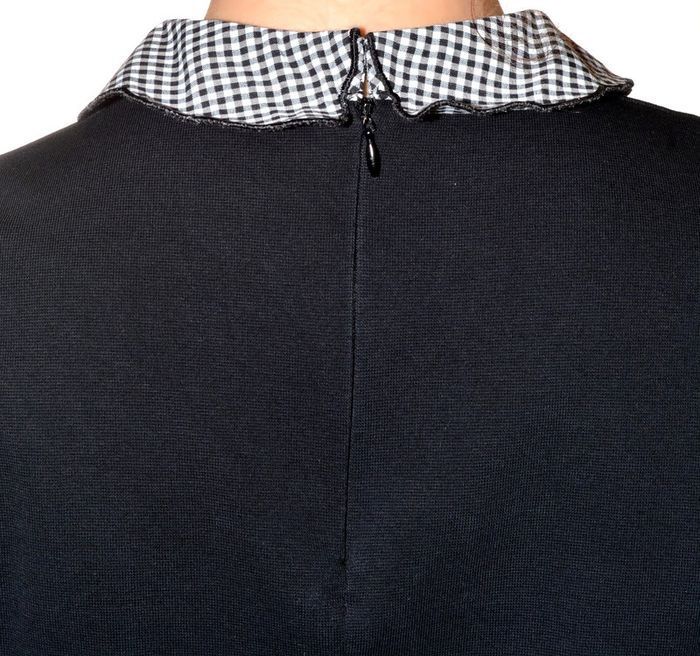 tshirt noir uni col claudine motif carreaux noir et blanc taille M - photo numéro 2