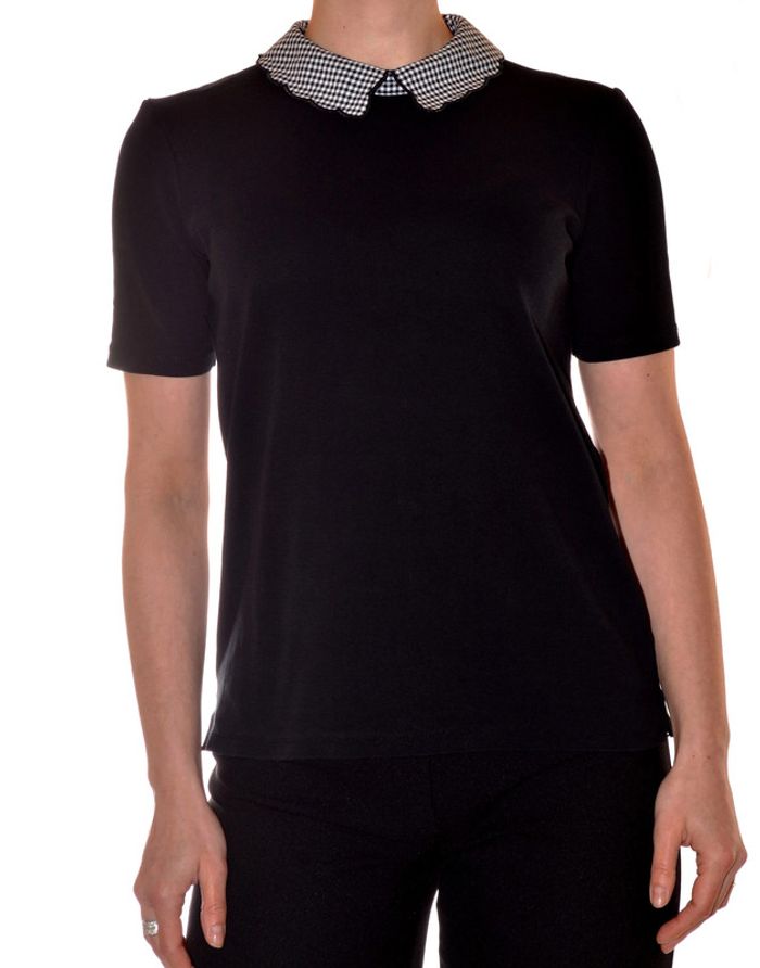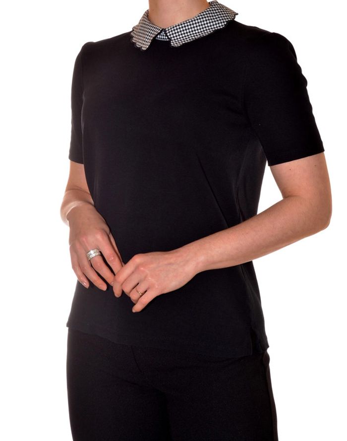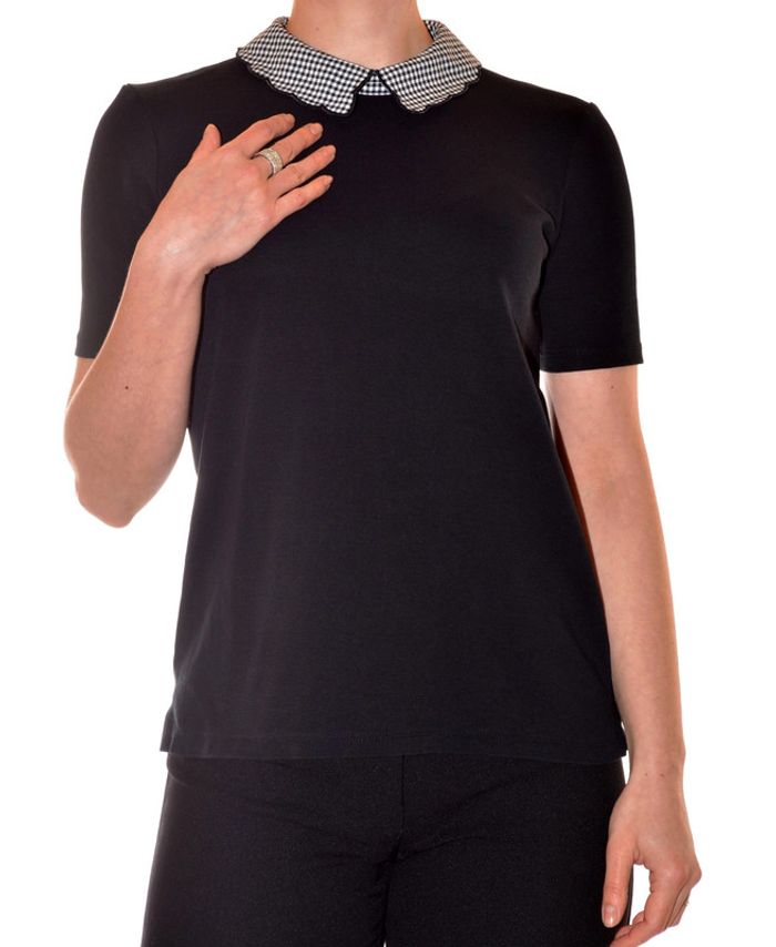 tshirt noir uni col claudine motif carreaux noir et blanc taille M - photo numéro 1