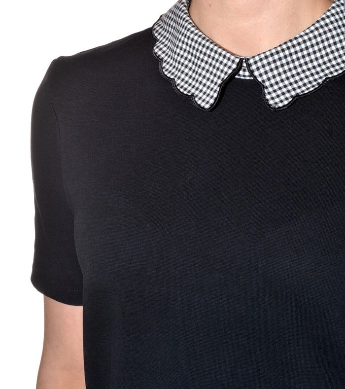 tshirt noir uni col claudine motif carreaux noir et blanc taille M - photo numéro 6