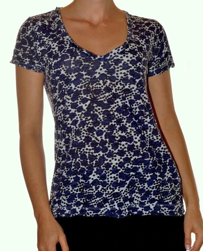 Tshirt col V ajusté motif floral bleu et blanc taille S