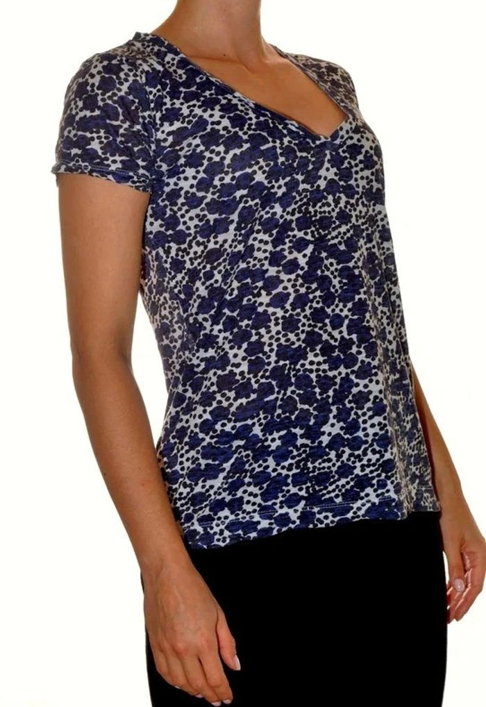 Tshirt col V ajusté motif floral bleu et blanc taille S - photo numéro 2