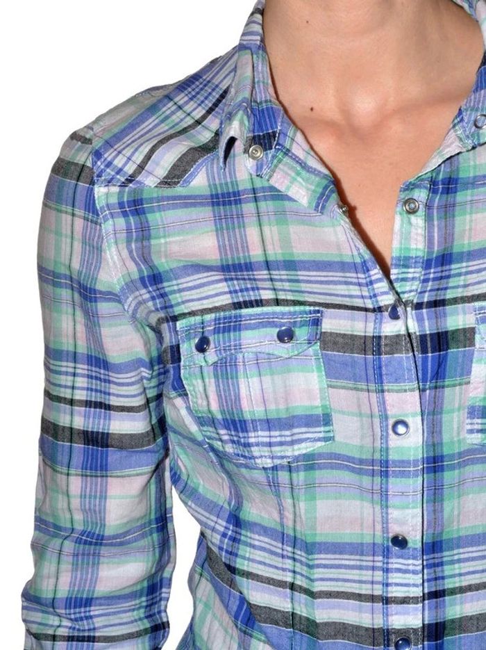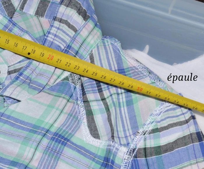 🌿mensurations en photos 🌿longueur: 64 cm 🌿poches poitrine #chemisecarreaux36 #chemisemancheslongues36 #chemisecamaieu36 #camaieufemme36 #chemisebleue36