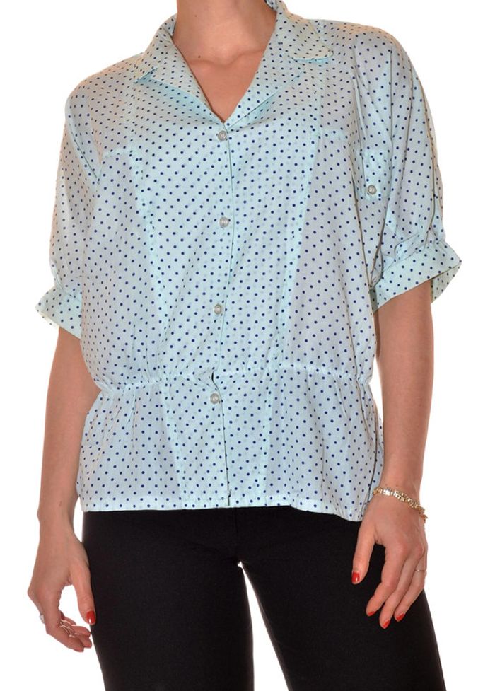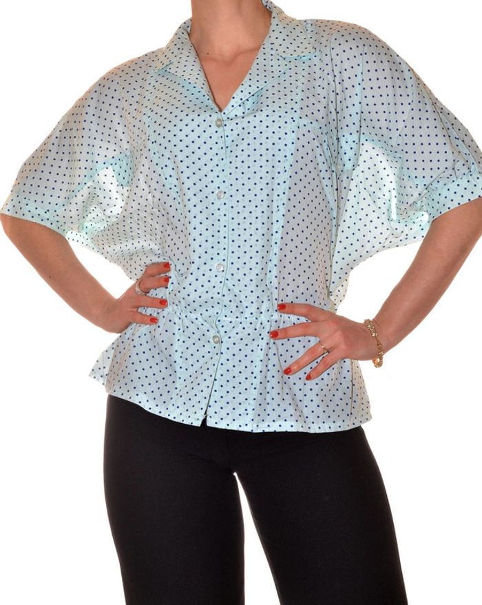 blouse bleue clair à motif pois bleu manches courtes taille XL